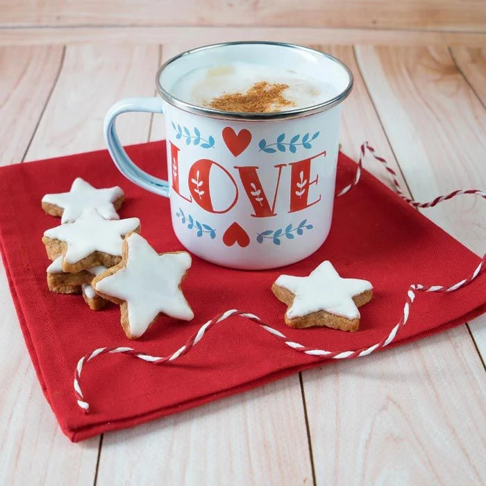 • Mit weißer Glasur und gerösteten Haselnüssen vollendete Zimtsterne