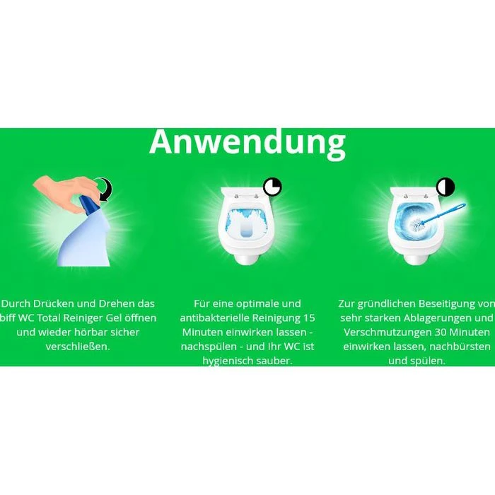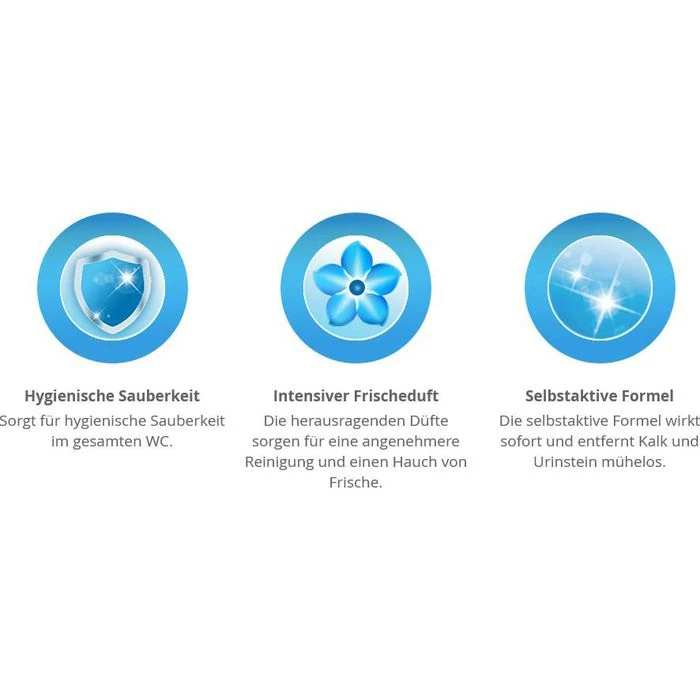 Hinweis: WC-Reiniger vorsichtig verwenden. Vor Gebrauch stets Etikett und Produktinformationen lesen.