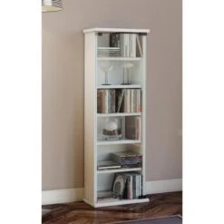 VCM CD-Regal Vetro, 25217, Weiß, Mit Glastür, Aus Holz, 31 X 91,5 X 18cm, 6 Fächer