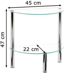 Haku-Möbel Beistelltisch 90241, Transparent, Aus Glas / Metall, 45 X 47 X 22cm, Halbkreis