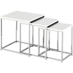 Haku-Möbel Beistelltisch 33383, Satztisch, Holz / Metall,3-teilig, Weiß, Quadratisch