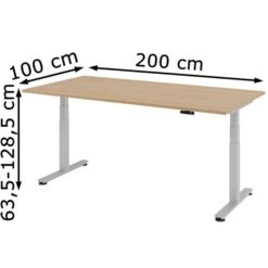Hammerbacher Schreibtisch XDSM 2E, Eiche, Elektrisch Verstellbar, 200 X 63,5-128,5 X 100cm