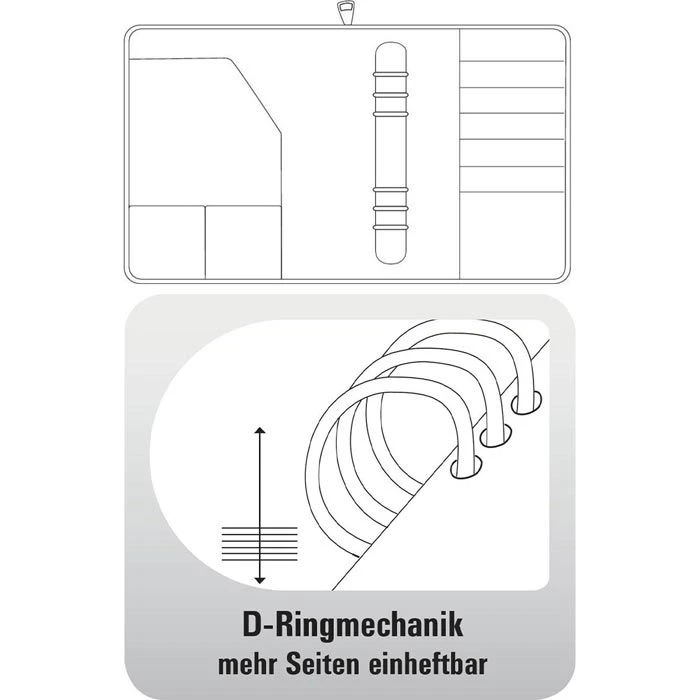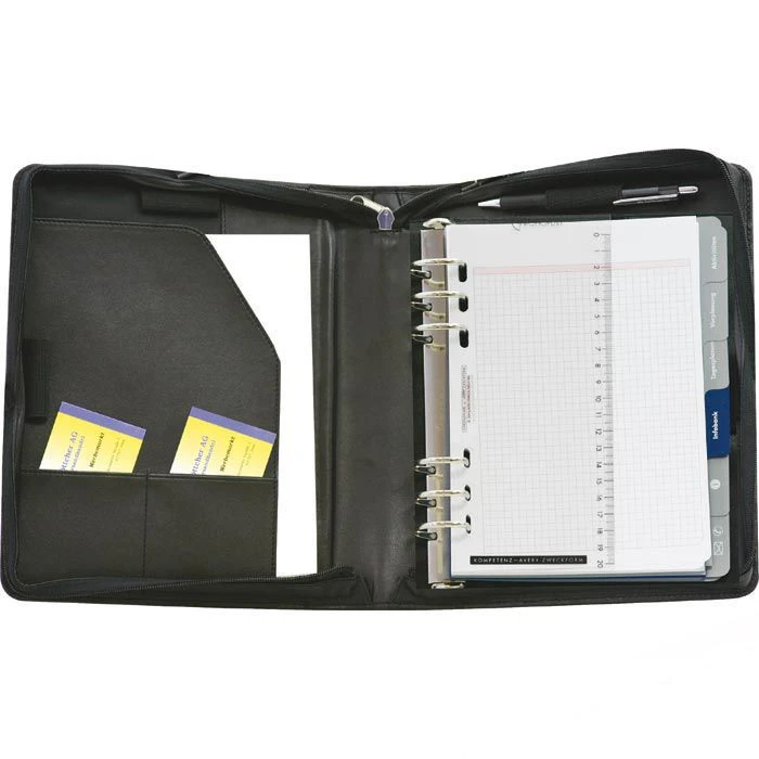 sonstiges: mit Stiftschlaufe, zahlreichen Einsteckfächern für Visitenkarten und Einschubfächern für lose Blattsammlungen