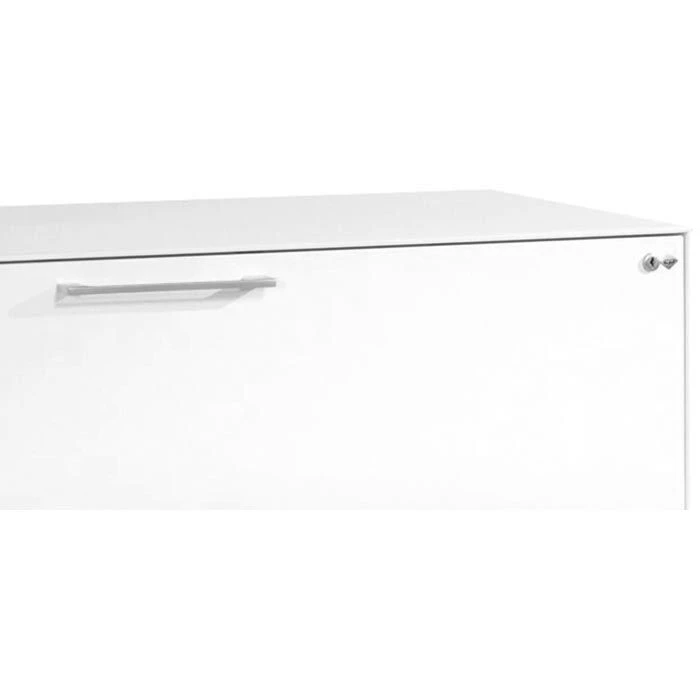 • Doppelwandige Schubladenblenden mit matt vernickelten Bügelgriffen