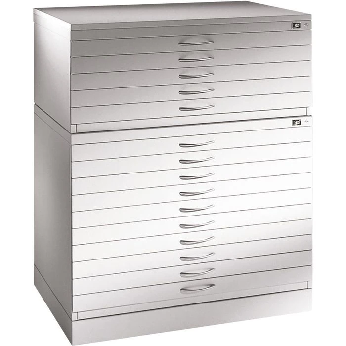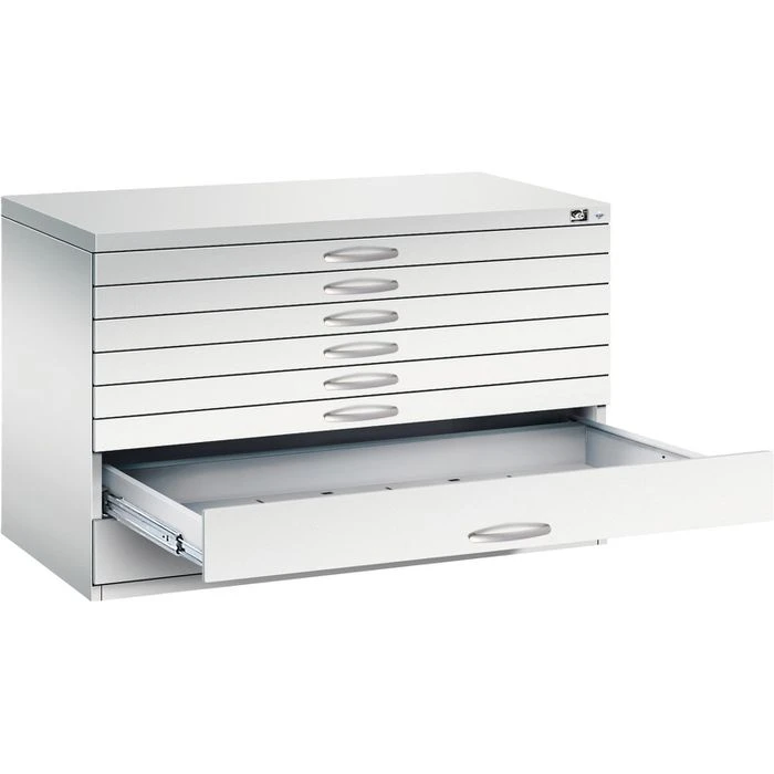 • Niederhalter vorn und Deckleiste hinten verhindern das Aufrollen der Pläne