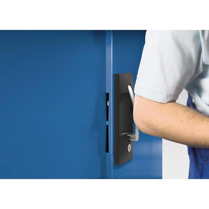 Türen: verstärkte Flügeltüren mit 3-riegeligem Muldengriffschloss „Ergo-Lock“, inkl. 2 Schlüsseln