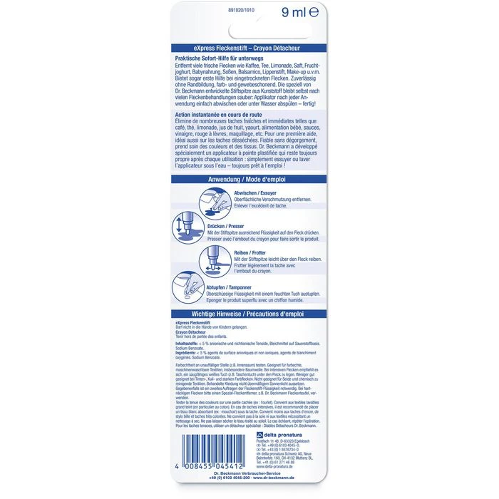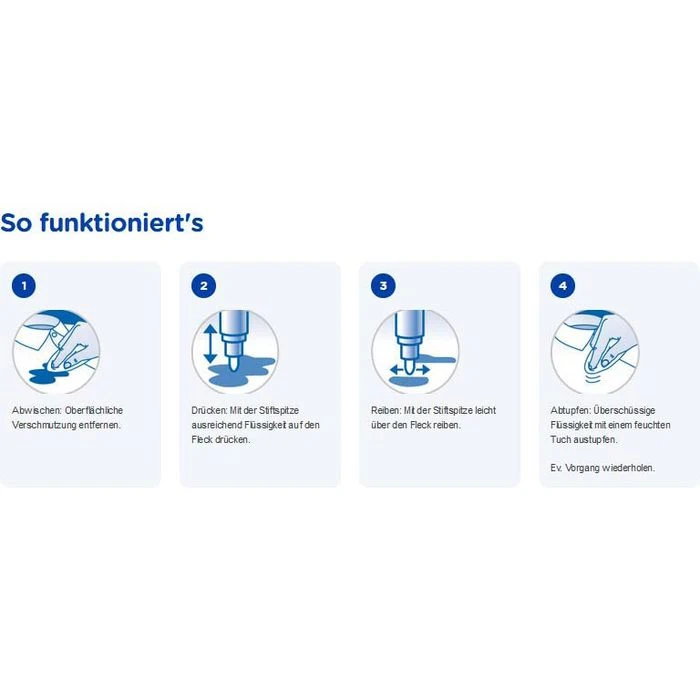Hinweis: Fleckenentferner vorsichtig verwenden. Vor Gebrauch stets Etikett und Produktinformationen lesen.