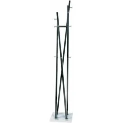 sonstiges: aus dunkel verchromtem Metall, mit 12 verchromten Kleiderhaken, standsicher durch schweren Standfuß aus MDF in hochglanz weiß