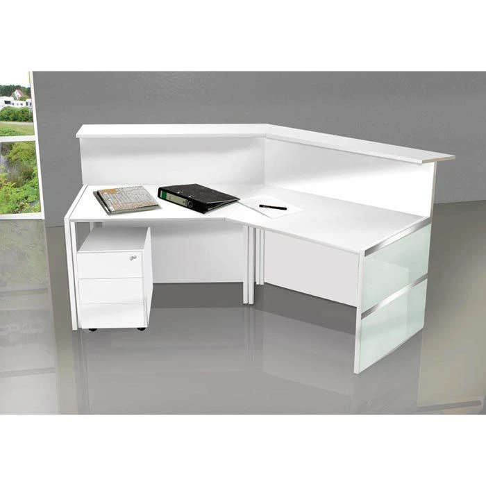 Kerkmann Empfangstheke Atlantis, Weiß / Weiß, 241 X 110 X 170cm, Winkeltheke
