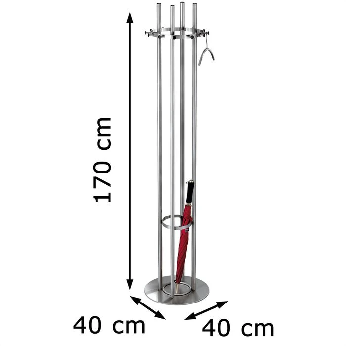 sonstiges: hochwertiges Design, 12 Mantelhaken, Schirmhalter mit Tropfmulde, standsicher durch schweren Fuß
