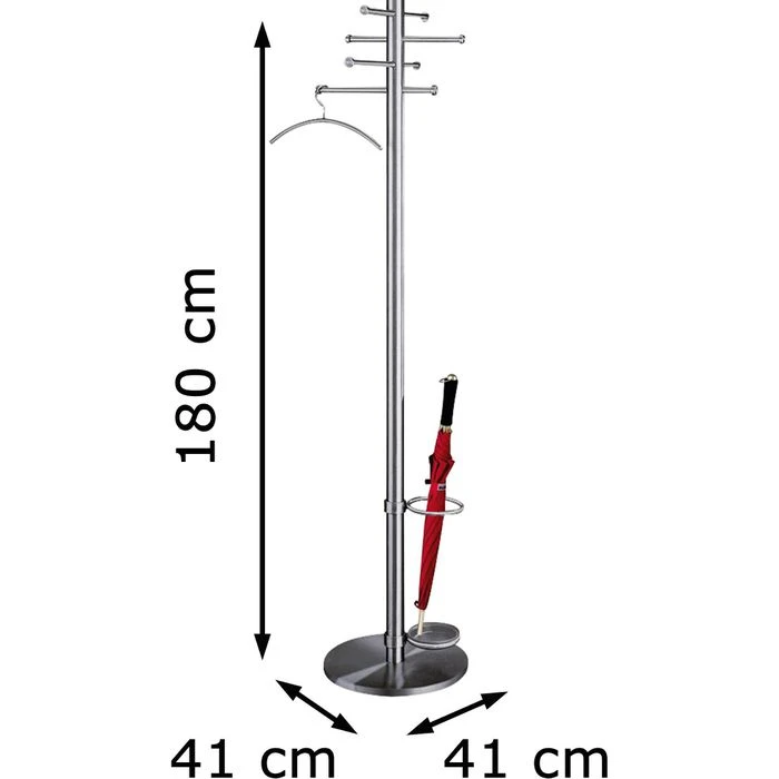 sonstiges: mit 4 verschiebbaren Armen mit 8 Hut- und Mantelhaken, standsicher durch schweren Fuß