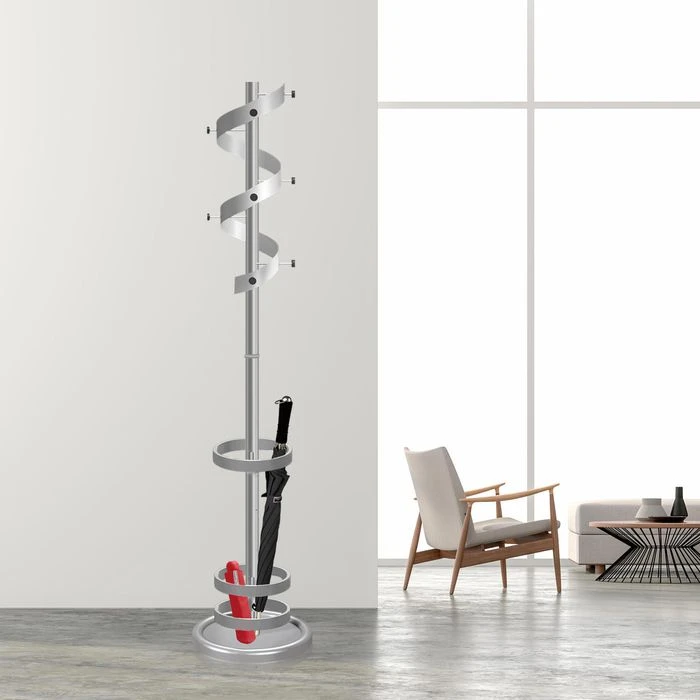 sonstiges: schwungvolle Krone mit 10 Mantelhaken, Schirmhalter mit Tropfmulde, standsicher durch schweren Standfuß mit Betonfüllung