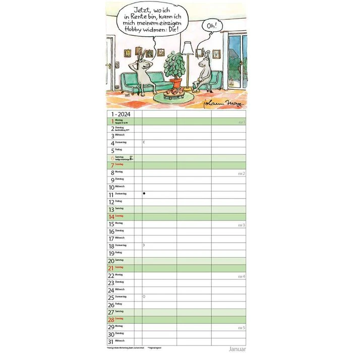 • Praktische Zusatzspalte für Vermerke zu Urlaub, Müll etc.