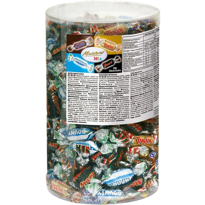 Mars – Zucker, Glukosesirup, Kakaobutter, VOLLMILCHPULVER, Kakaomasse, Sonnenblumenöl, MAGERMILCHPULVER, MILCHZUCKER, Süßmolkenpulver (aus MILCH), fettarmer Kakao, Butterreinfett (aus MILCH), GERSTENMALZEXTRAKT, Emulgator (SOJALECITHIN), Salz, HÜHNEREI-TROCKENEIWEIß, Palmfett, MILCHEIWEIßHYDROLYSAT, natürlicher Vanilleextrakt