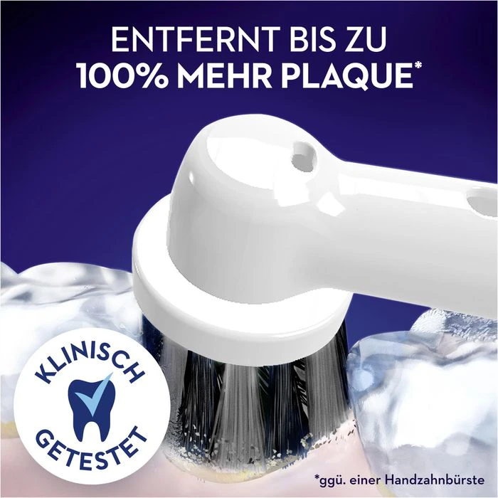• Entfernt bis zu 100% mehr Plaque als eine Handzahnbürste