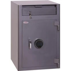 sonstiges: das Wertfach ist mit einem Fingerprintschloss mit 128 speicherbaren Fingerabdrücken ausgestattet, mit LED-Anzeige, 4-Augen-Prinzip und verdeckter Codeeingabe, die Einwurfklappe ist durch ein Doppelbartschloss gesichert, zusätzliches Fach im Tresorraum zum Auffangen der eingworfenen Objekte, Innenfach ist durch ein Zylinderschloss gesichert, Verriegelung durch 5 Bolzen, Türstärke 12 mm, Korpusstärke 6 mm, Türöffnungswinkel 180° durch außenliegende Bänder, eine spezielle Umlenkplatte verhindert den Zugrif auf den Inhalt des Wertfachs