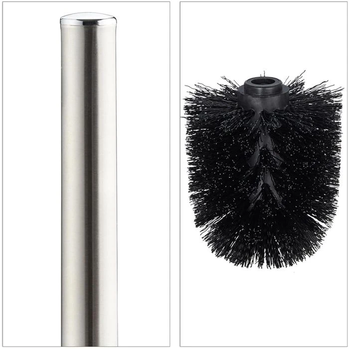 • Eleganter Metallstiel mit wechselbarem, schwarzem Bürstenkopf