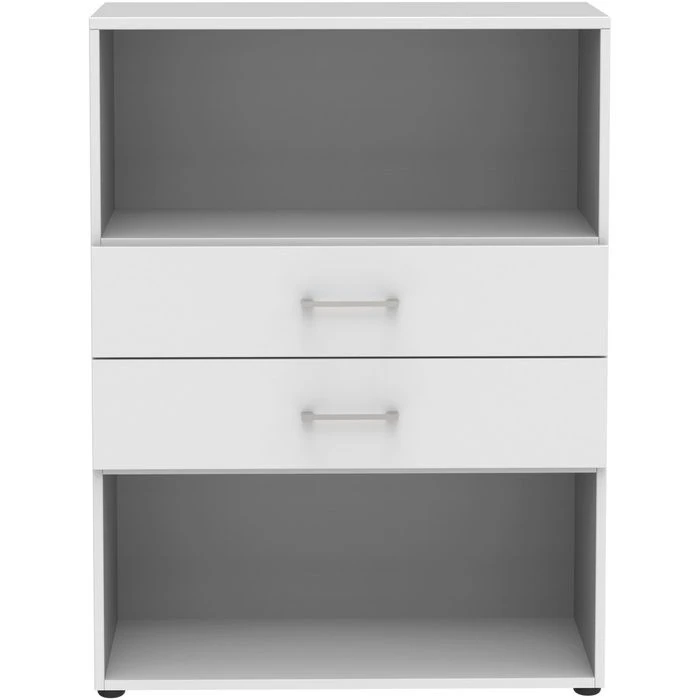sonstiges: 2 frei montierbare Schubladen mit 70% Teilauszug, strapazierfähige, melaminharzbeschichtete E1-Qualitäts-Spanplatte, hochwertige ABS-Kanten, Front und Seitenteile 16 mm stark, Platte, Boden und Fachböden 19 mm stark, 4 Sockelfüße