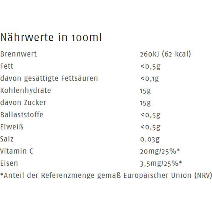 • Ohne Konzentrate und ausschließlich aus Direktsäften hergestellt
